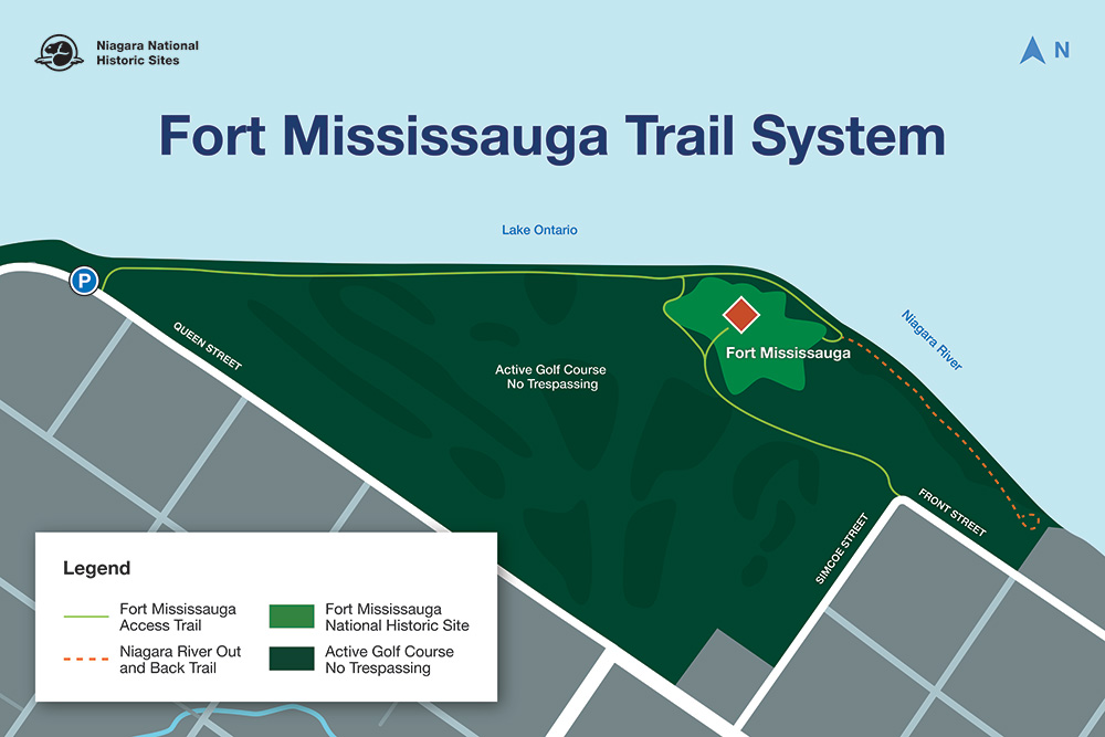 In late 2020 Parks Canada connected a new lakeshore trail that extends from the cairn of the Battlefield of Fort George along the shoreline of Lake Ontario through to Fort Mississauga, where visitors can meet up with a walking trail that extends to Front Street in Niagara-on-the-Lake.