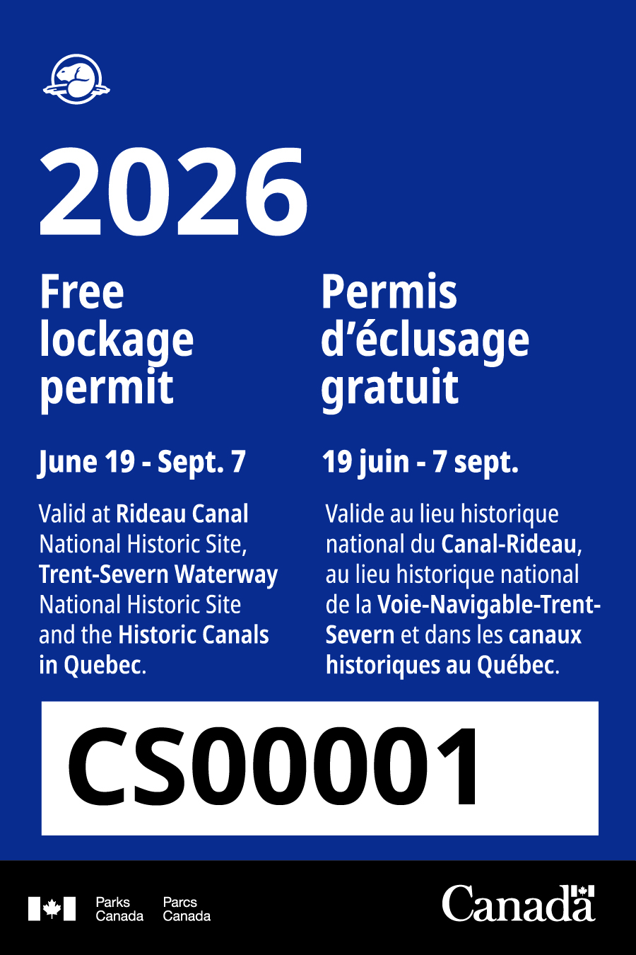 During the Canada Strong period, from June 19 to September 7, 2026, boaters will be issued a free lockage sticker when they arrive at their first lockstation. No lockage fee is charged, while a permit for mooring is required.